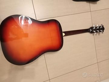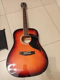 Chitarra a 6 corde nuova solo provata e mai utilizzata, ha una corda spezzata ma facilmente sostituibile,compresa di poggiapiedi , accordatore, plettro e custodia .E pari a nuova non ha graffi ne segni di usura.