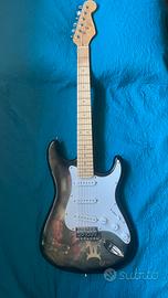 Chitarra elettrica htx corde un po vecchiotte ma do quelle nuove insieme alla chitarra tutto funzionante tutti i tone il volume perfetto non da nessun problema. Piccoli segni di usura che puoi vedere in foto. Trattabile
