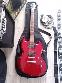 vendo per inutilizzo chitarre + accessori del valore di 650 euro sul nuovo. per qualsiasi informazione sono a disposizione. 1- chitarra acustica Ibanez con accordatore . 2- chitarra elettrica LTD viper 10 3- amplificatore Marshall . 4- custodia chitarra rigida Stagg 5- treppiedi Hercules 6- capotasto 7- tracolla fender 8- cavi 9- poggia piedi .