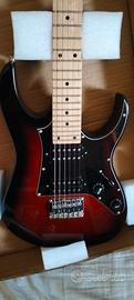 Ibanez GRGM21M-WNS Mikro Chitarra Elettrica 3/4 HH Per Ragazzi La chitarre elettriche ridotte GRG Mikro sono perfette per i giovani rockers in erba, e per i chitarristi più esperti che hanno bisogno di uno strumento poco ingombrante quando sono in viaggio. Caratteristiche Body: Tiglio Manico: GRGM in Acero Tastiera: Acero Scala: 22.2" (564mm) Capotasto: 41mm Intarsi: Dente di squalo Pickup: 2x Pickup Infinity (humbucker) Hardware: Cromato Ponte: Fisso Battipenna: Nero Finitura: Walnut Sunburst N.B. Custodia NON inclusa