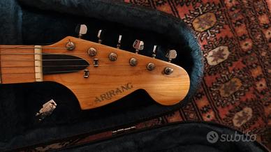 Chitarra elettrica anni 70, ARIRANG, prodotta in Korea. Usata molti anni fa e ferma da un po' di tempo, la vendo insieme alla custodia rigida anch'essa ben conservata. Ottima per che cerca un suono vintage.