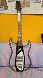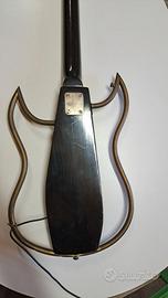Chitarra elettrica artigianale ( credo ) fine anni 70 inizio 80 circa , Chitarra molto particolare forse pezzo unico , dalla "irregolarita" della paletta penso sia uno strumento costruito e non "di serie" , il cavo credo si stia rompendo perché il suono " va e viene " , cavo che è integrato nella chitarra .
