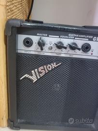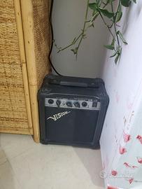 Chitarra nera lucida, marca VISION distorsore, tono, alti e bassi, Jack per amplificatore anche VISION da 15 watt. Custodia in plastica, vari plettri. Prezzo non trattabile.