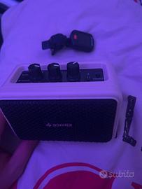 Chitarra elettrica blue e bianca come nuova, comprata ma usata poche volte, con tutto il set intero, contando equalizzatore, case, stopper, accordatore elettronico, pin, cavo, corde nuove di scorta ed altro
