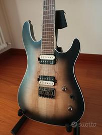CHITARRA ELETTRICA SOLID-BODY Chitarra Elettrica Solid-Body Costruzione: Bolt-On Scala: 25.5" (648mm) Corpo: Mogano (Palaquium) Binding: Bianco Top: Acero Spalted Manico: Acero Tastiera: Jatoba Radius: 15.75" (400 mm) Tasti: 24 Hardware: Black Nickel Meccaniche: Cort Ponte: Cort Hardtail, con corde passanti attraverso il corpo Pickup: EMG® RetroActive Super77 Elettronica: Volume, Tono, 3-Way Switch Corde: D'Addario® YB EXL110 Colore: OPRB - Open Pore Raw Burst Custodia: Non fornita SOLO CONSEGNA A MANO