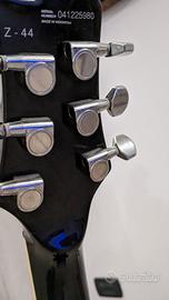 Questa Cort ha una costruzione set-neck, i materiali includono un manico e un corpo in mogano, una tastiera in palissandro con 22 tasti grandi e un raggio di 12″, e una scala Gibson 243/4″. Altre chicche includono un ponte concesso in licenza da Tone Pros, una configurazione string-through-body, accordatori pressofusi e due volumi, più una manopola Tone con una funzione push/pull coil-tap.