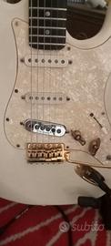 Il modello della chitarra è quello dell'iconica Stratocaster di casa Fender.