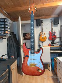 Chitarra artigianale costruita a mano – Strumento unico marchio A.M Custom Guitars, che altro non è che il mio Brand di chitarre nuove. Metto in vendita una chitarra in stile Stratocaster modello A.M Custom ST-PRS RADICA SUNBURST s.n. 00139 Marzo 2026 realizzata interamente a mano nel mio laboratorio. Suono e colleziono chitarre da oltre 50 anni, e in tutto questo tempo ho sempre curato personalmente setup, modifiche e manutenzioni sia dei miei strumenti sia di quelli di molti colleghi musicisti. Da circa due anni ho deciso di trasformare questa esperienza in un vero e proprio progetto artigianale: costruire strumenti da zero, partendo dalla fresatura del corpo fino all’assemblaggio finale, utilizzando solo componenti di qualità selezionata. Questa chitarra è il risultato di competenza, cura e passione.Caratteristiche principali: •Corpo Stile Stratocaster mod. A.M. CUSTOM ST-Sunburst •Colore sunburst - Top in Radica di pino •Componenti scelti per affidabilità e resa sonora •3 Pick-up Single coil Alnico 5 •Ponte Fisso finitura GOLD •Meccaniche Finitura GOLG •Manico PRS 24 tasti •Finitura curata a mano •Setup completo eseguito personalmente È uno strumento pensato per offrire suonabilità, stabilità e un timbro ricco e professionale. Perfetto per chi cerca una chitarra unica, costruita con attenzione e con un’esperienza musicale maturata in decenni di pratica. Per qualsiasi prova o informazione aggiuntiva resto a disposizione, le mie Chitarre sono esposte nel negozio di strumenti musicali “MUSICA PIU’” in Corso Torino 4 a Rivoli dove potete vederle e provarle, e ovviamente acquistarle oppure rivolgervi a me Mauro.