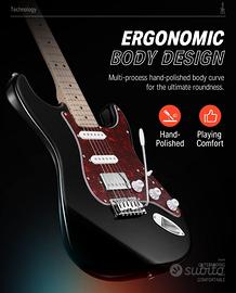 [Tutto in un unico pacchetto] Viene fornito con amplificatore, borsa, capotasto, cinghia, corde, sintonizzatore, chiave a brugola, bilanciere per chitarra, cavo e plettro, il kit per chitarra elettrica DST-152 è dotato di tutto il necessario. Portalo a casa e divertiti!