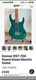 Chitarra elettrica Donner dst 700 colore verde foresta, come nuova, completa di bag e accessori. Bellissima chitarra ottimo suono adoperata neanche un mese poi ho desistito. Ho messo 2 foto dove potete vedere il prezzo dell' usato e il prezzo del nuovo. Se volete vedere delle demo del suono di questa chitarra potete cercare su YouTube c'è ne sono diverse.