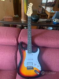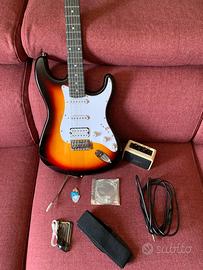 kit chitarra elettrica donner, dotata di due classici pickup single- coil e di un potente pickup hambucker 203S. Selettore a 5 vie e 2 controlli di tono e volume per la selezione.