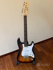 Vendo chitarra elettroca compieta di supporto , leggio, custodia, amplificatore e accessori di ricembio (corde , plettri ecc.)