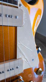 Se cerchi una chitarra NUOVA, possibilmente appena setuppata ed al prezzo di una usata sei nel posto giusto 😉🥳 Come da titolo, vendo questa Eko LS400 Les Paul Goldtop in condizioni STREPITOSE. Pellicole ancora applicate su pickup e battipenna, scatola originale con imballi e certificati, cartellino con prezzo e certificato di ispezione ancora presente. Setup completo e cambio corde appena effettuato: Action bassissima e precisa. Tastiera extra-morbida. Come dico sempre: essendo appena setuppata è sicuramente migliore della stessa chitarra comprata nuova in negozio. I due pickup di tipo P90 hanno un suono pazzesco che non mi aspettavo: Suono caldo e grosso + grande saturazione + Feeling “Gibson-style”, ricco e potente. Spinta e attacco sorprendenti. Perfetti per blues, rock e hard rock, ma versatili anche per altri generi. Insieme alla chitarra regalo: -Cinghia/tracolla nuova -Portaplettri adesivo -10 plettri assortiti -Una confezione extra di corde (09-42) Godetevi le foto e se ne volete altre o avete domande non esitate a scrivermi. Rispondo sempre rapidamente a tutti. Preferirei scambiare a mano a Palermo ma se richiesto posso spedire in sicurezza con imballaggio extra forte ed in tempi rapidissimi