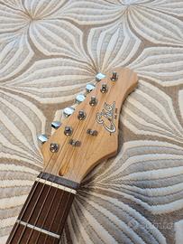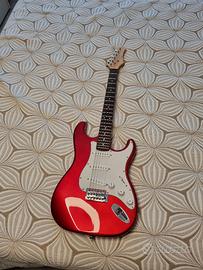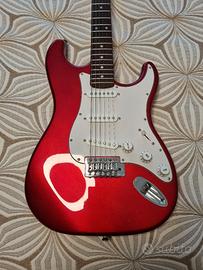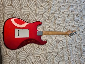 Chitarra elettrica EKO color rosso lucido e bianco e con manico in legno di tiglio.