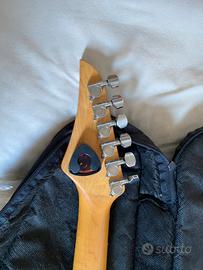 La chitarra è un modello Eko di fine anni '80 o primi anni '90 (parte della serie Ghost/Fire) caratterizzata da una configurazione tipicamente "Superstrat", in ottime condizioni. Caratteristiche principali dello strumento Configurazione Pickup: HSS (un Humbucker al ponte e due Single Coil), che la rende molto versatile. Ponte: Licenza Floyd Rose (ponte flottante con bloccacorde al capotasto. Estetica: Segnatasti a "dente di squalo" (sharktooth inlays) e paletta a punta, ispirata ai modelli Jackson/Ibanez. Produzione: Il seriale (830489) e la placca "Italy"marchio italiano e custodia inclusa.