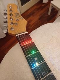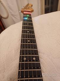 Dotata di visual note, tramite collegamento con l'app, si illuminano i led al manico per imparare accordi, scale, canzoni ecc...