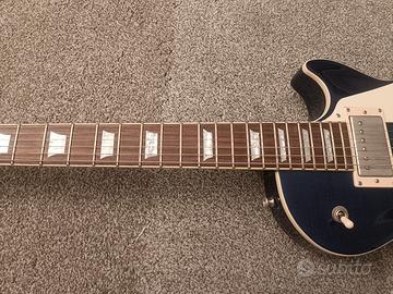 modello LES Paul, chitarra elettrica Epiphone blu scuro, con fodero rigido compreso nel prezzo. usata ma tenuta bene.