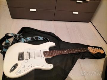 Chitarra elettrica Fender praticante nuova. Ha solo una particolarità (vedi foto3): a causa di un maestro deficiente che non mi ha avvisato che mia figlia mancina poteva suonare con la destra, è stata modificata spostando lo spinotto dell'alimentazione per essere suonata mancina. In pratica è la chitarra di Hendrix, porca pupazza Per questo la svendo a metà del costo, perché bisogna rimettere a posto lo spinotto (si può fare in ogni negozio di strumenti musicali).