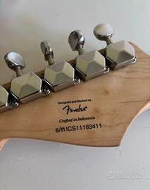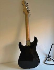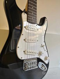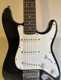 Chitarra elettrica Squier by Fender Stratocaster Mini, colore nero con battipenna bianco.
