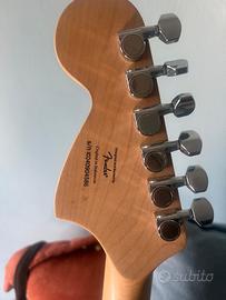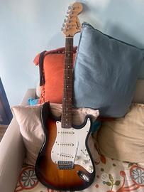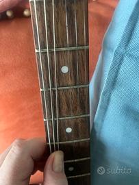 Colore sunburst, in ottime condizioni e perfettamente funzionante, suonata poco, tasti ancora nuovi, solo da cambiare le corde. Vendo chitarra con leva del tremolo, niente altro.