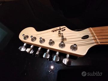 chitarra elettrica Stratocaster 22 tasti serie limitata della Squier con elettronica Humbucker più 2 Double coil tutti splittabili in single coil, più treble bleed su potenziometro del volume, perfettamente settata e pronta per essere usata sui palchi per qualsiasi genere. prezzo €390 telefono 327 21 61 610