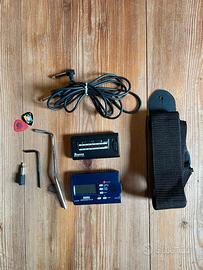 Vendo chitarra elettrica Ibanez blu elettrico in ottime condizioni. Inclusi nel prezzo amplificatore, accordatore, metronomo e altri accessori.