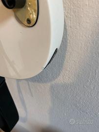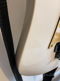 Vendo la chitarra in oggetto in quanto la band ha chiuso i battenti e riduco al minimo la strumentazione per strimpellare ogni tanto... A mia volta ho acquistato questa chitarra usata ed in buono stato e così è ancora anche per il poco utilizzo, quasi esclusivamente a casa o sala prove. Come da foto presenta un paio di piccolissime ammaccature sulla vernice, esteticamente e sostanzialmente irrilevanti. I tasti sono in buono stato ed anche con un setup delle corde ribassato non presentano ronzii (fret buzz). Pur non utilizzando la leva del vibrato ho sostituito le molle e bloccato il ponte mobile in modo che la leva si muova solo verso il corpo della chitarra. Blocco rimovibile in un attimo comunque. Tenuta accordatura eccezionale e chitarra sorprendentemente molto versatile, permette di suonare praticamente di tutto (a mio avviso).. Ovviamente non mi interessano permute. Posso spedire aggiungendo € 15,00...