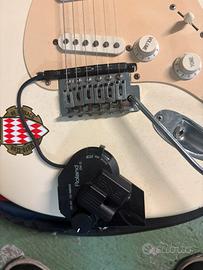 Squier stratocaster. Questa chitarra e’ speciale e’ fornita con pedaliera ROLAND GR20 Puoi fare un’assolo con il suono di SAX. FISARMONICA. VIOLINI. BATTERIA. BASSO FLAUTO TROMBA ORGANO HAMMUND e molti altri strumenti campionati con suoni veri. Tu suoni la chitarra e puoi decidere che strumento vuoi mettere insieme o separato.. se vuoi sapere di piu’ vai su youtube e scrivi ROLAND GR20 e vedrai il funzionamento