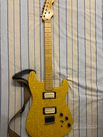 Chitarra elettrica personalizzata, fatta a mano, in legno. Incluso anche poggiapiedi e stand per chitarra. Consigliato ritiro