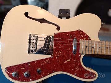 chitarra elettrica modello tipo (Telecaster thinline) semiacustica molto bella, adatta soprattutto per genere country blues, non è una fender originale, altrimenti avrebbe un altro prezzo, chi se ne intende lo sa, è praticamente nuova, usata pochissimo, sono disponibile a farla provare se abitate vicino a me,il costo della spedizione è a parte,a carico dell'acquirente, regalo la custodia, astenersi perditempo, grazie