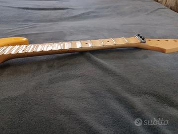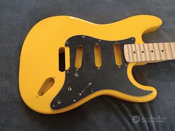 Vendo chitarra elettrica, modello Strato di liuteria. presenta un paio di graffi sulla vernice a lato del corpo. Body in frassino pezzo unico manico acero scaloppet con blocca corde per Floyd Rose è solo da montare l'elettronica e il ponte Floyd la chitarra è perfetta. vendo perché per me è troppo pesante no permute.