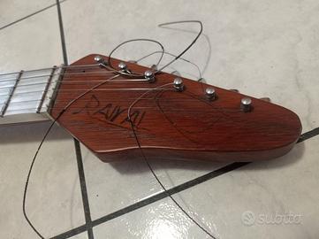 È una chitarra costruita interamente a mano, quindi è un modello unico. Ha il corpo in legno massiccio e il manico in alluminio, molto robusto. Ho scritto per principianti in quanto il manico ha la larghezza di quelli della chitarra classica, quindi è più facile trovare le note, ma in realtà la chitarra classica la suonano anche i professionisti. Perciò se qualcuno vuole suonare quattro canzoni in compagnia senza spendere grosse cifre in più ha anche un oggetto unico. Vendo dopo visione e prova