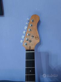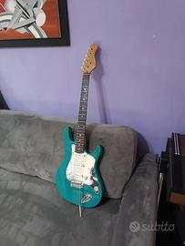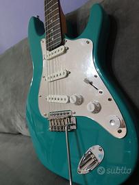 chitarra elettrica assemblata da me, con body in ontano, manico in acero, tastiera in palissandro, battipenna anni 80 in plexiglass specchiato con qualche segno di usura, pickup fender mex ceramici, sellette marchiate fender. Vendo per monetizzare.