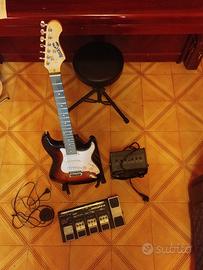 Set completo per chitarra elettrica. Chitarra level entry Rock Jam com amplificatore e cavetteria. Amplificatore Rock Jam 15 watt Mulfieffect Zoom GFX-4 Vendesi anche separatamente. Ottimo per chi si appresta a suonare inizialmente.