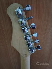 Chitarra elettrica Eko S-300 sunburst. Sostituiti i tre single coil con tre Fender standards. Qualche piccolo segno di usura che non ne compromette l'uso. A corredo: strap lock, corde nuove Ernie Ball Hybrid, tracolla e custodia imbottita.