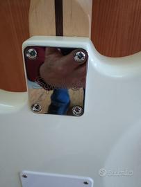 Chitarra elettrica Fender Squier Stratocaster bianca del 2019. Tenuta maniacalmente. Priva di segni di usura. A corredo: strap lock, corde nuove Ernie Ball Hybrid, tracolla Fender e custodia morbida. Usato - come nuovo.