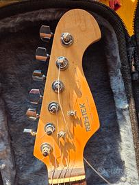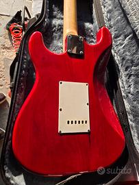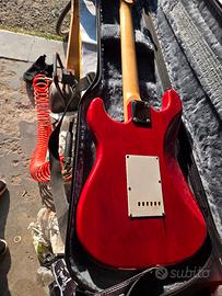 Vendo chitarra elettrica Roytek Traditional Series, modello Stratocaster, finitura rosso ciliegia trasparente. Marca italiana artigianale, non la solita cinese da discount. Caratteristiche: Body in legno massello, finitura Cherry Trans Manico maple, tastiera rosewood 3 pickup single coil Tremolo sincronizzato tipo Strat Volume + 2 Tone Stato: usata, funzionante. Corde da cambiare (ossidate). Pickguard ingiallito ma integro. Nessuna rottura né riparazioni strutturali. Inclusa: custodia rigida Stefy Line in ottime condizioni. Adatta a chi vuole iniziare o a chi cerca uno strumento artigianale italiano a prezzo onesto. Suona e si accordi regolarmente. Trattativa possibile di persona. Zona Vigevano (PV). No spedizione. Prezzo: €190 (trattabile)