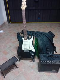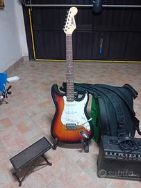 chitarra elettrica (vari colori e marche).complete di custodia, amplificatore e cavalletto di riposo