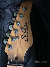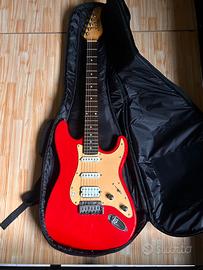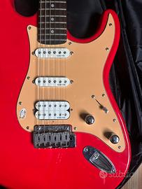 Vendo chitarra elettrica Strat-style Silhouette in finitura rosso lucido con battipenna crema. Configurazione pickup HSS: 2 single-coil + humbucker Schecter (vedi foto, pickup marchiati Schecter) — suono molto versatile, dal pulito brillante al rock più deciso. Probabile produzione Korea (presenza di bollino QC “Passed” visibile nelle foto, tipico delle fabbriche coreane). Manico bolt-on con tastiera scura (21/22 tasti — specificare numero se lo misuri), ponte tremolo vintage-style, custodia imbottita inclusa. Condizioni: funzionante, zero segni d’uso o micro-graffi (cio che sembrano graffi in foto è solo il riflesso)
