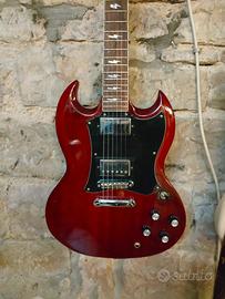Vendo per inutilizzo, chitarra elettrica mod. SG di produzione China,corpo e manico in mogano,tastiera in legno di rosa molto bella,dot in madreperla tipo Angus,cambiati i pickups con Epiphone originali di una SG,la chitarra donatrice e e' visibile in sala prove,ponte sostituito con uno a sellette roller in ottone. E' Cinese,per carità ma e' veramente fatta bene e inaspettatamente curata , non e' il mio genere ma per chi preferisce questa tipologia di chitarra è ottima. Disponibile per qualsiasi prova,consegna a mano e comunque preferisco che venga vista e provata.