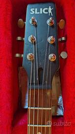 Vendo chitarra elettrica Slick SL59 modificata con un pickup P90 formato humbucker al manico. Lavoro eseguito da un liutaio professionista: cablaggio pulito + ottimo setup con action bassa. 🎸 Condizioni: eccellenti, normali lievi segni d’uso. ⚙️ Modifiche: Pickup manico: P90 formato humbucker (Mean 90 by Guitar Fetish) Pickup ponte: P90 originale Slick Nuovo potenziometro tono + switch a 3 vie Chitarra molto versatile: dal classico suono country/surf del ponte fino al carattere caldo e tondo del P90 al manico. Pronta da suonare, non necessita di nulla. 🎨 Inclusa la sua custodia rigida colori psichedelici in buone condizioni. Prezzo trattabile, ritiro a mano in zona LC/CO oppure spedizione tramite Mailbox Etc. Specifiche tecniche: Scala Gibson standard 24 3/4" (circa 628 mm) Raggio tastiera 12" Capotasto largo 43 mm 22 tasti in nichel-argento profilo 6105 medium-jumbo Pickup al manico Alnico V P90 Pickup al ponte Alnico V P90 (formato HB)