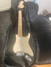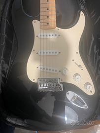 Vendo bellissima Squier strat Fender affinity series, colore nera, come nuova. Manca tremolo, costa 8/10 euro su amzon. La chitarra nuova su amazon costa 250, regalo plettro, cavo per amplificatore, cinghia e custodia zaino. tutto a 170. Possibilità di avere piccolo ampli storm ak 15 gr e supporto per tenerla in piedi quicklock, prezzo a parte ampli e stand 50 . se prendete tutto 215