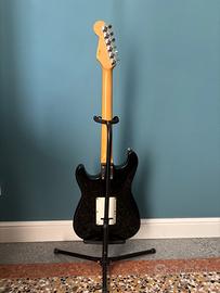 Chitarra Squier affinity, prodotta nel 1998 in Cina (CD98 seriale), acquistata nuova nel 2000. A differenze delle attuali il corpo è in Ontano e non in Pioppo e la tastiera in palissandro (1,61 pollici a 21 tasti. Il battipenna nero è stato aggiunto in un secondo momento, i tre pick up sono ceramic single coil e sono utilizzabili in cinque configurazioni.