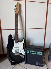 Chitarra elettrica della stagg più amplificatore come nuovo. Causa inutilizzo, usata per 4 lezioni. Compleata di fodera e ancora scatola originale