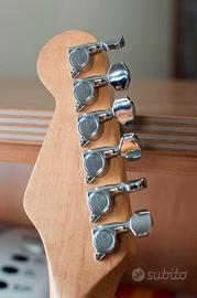 Vendo chitarra elettrica stile Stratocaster, base Squier, con relic artigianale eseguito da liutaio, ispirata a John Frusciante, LEGGERA. Inclusi CUSTODIA MORBIDA ottima, cavi, accordatore a clip Non è Fender Custom Shop e non è un relic di fabbrica. corde buone La chitarra suona bene, è funzionante al 100%, manico dritto, elettronica ok. Il relic è solo estetico, per look vintage. 🎸 Caratteristiche: Stile Stratocaster Base Squier (entry-level) Relic artigianale Ponte vintage 6 viti Configurazione classica single coil Buona come chitarra da studio, seconda chitarra o progetto 📍 Possibile prova di persona. 📸 Foto reali dell’usura e dei dettagli. Disponibili più dettagliate prezzo non trattabile
