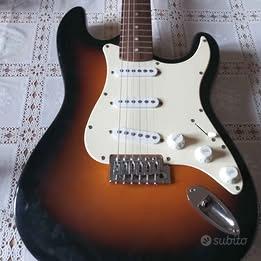 Chitarra elettrica Tenson California series modello Stratocaster, colore sunburst, usata pochissimo, condizioni pari al nuovo, selettore 5 posizioni, controllo volume tono. Manico agile facile da suonare. Spedizione a carico dell'acquirente, da concordare.