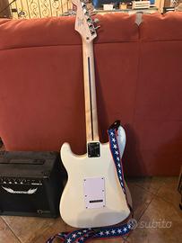 Chitarra elettrica usata pochissimo completa di supporto,cudtodia e amplificatore senza caricatore.