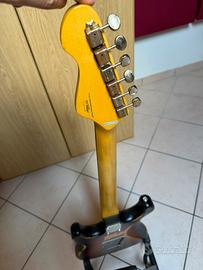 DISTRESSED TOBACCO SUNBURST Praricamente nuova Custodia compresa Caratteristiche: Body: Pioppo orientale Manico: Acero Profilo: Soft C Tastiera: Palissandro Raggio: 10" Scala: 25.5" (648mm) Tasti: 22 Medium Capotasto: 43mm, GraphTech Pickup: 2x Wilkinson WVS Alnico V, espansioni polari sfalsate e smussate, pickup WVC a doppia bobina al ponte Controlli: Volume, Tono 1 (pickup al manico), Tono 2 "Custom Mod" sia per pickup al centro e al ponte, Selettore 5-Vie Vibrato: Wilkinson WVC Meccaniche: E-Z-Lok Wilkinson WJ55 Paletta: Vintage classica