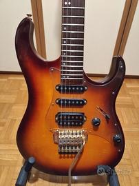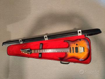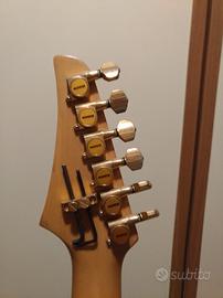 Bellissima Washburn. Messa a punto da liutaio. Modello realizzato in Corea tra il 1993 e il 1996. Top in acero, corpo in ontano, battipenna trasparente. Tastiera in palissandro. Pickup stock Washburn e Floyd Rose. Tasti 24.