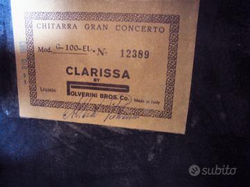 SPLENDIDA CHITARRA ELETTRIFICATA CLARISSA POLVERINI MOD. G 100 EL. LO STRUMENTO, VERSA IN OTTIMO STATO ED E' CORREDATA DI CUSTODIA.